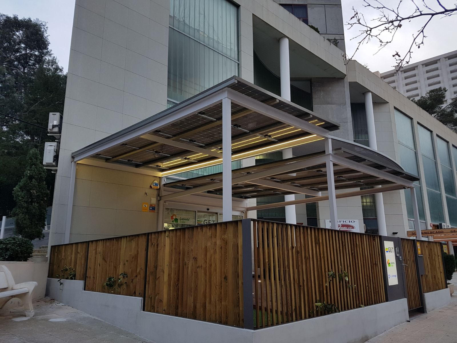 La sostenibilidad y la reducción del impacto ambiental es la base de nuestro grupo empresarial familiar, dedicado entre otras cosas a la instalación de soluciones fotovoltaicas para autoconsumo bajo la marca Cubierta Solar. Por ello hemos apostado por crear en nuestras propias oficinas un modelo sostenible con la instalación, entre otras soluciones energéticas y medioambientales, de una innovadora pérgola fotovoltaica que permite una reducción del gasto eléctrico en un 46% -el coste del kWh de la energía solar es un 67% más barato que el de la red a mediodía-.