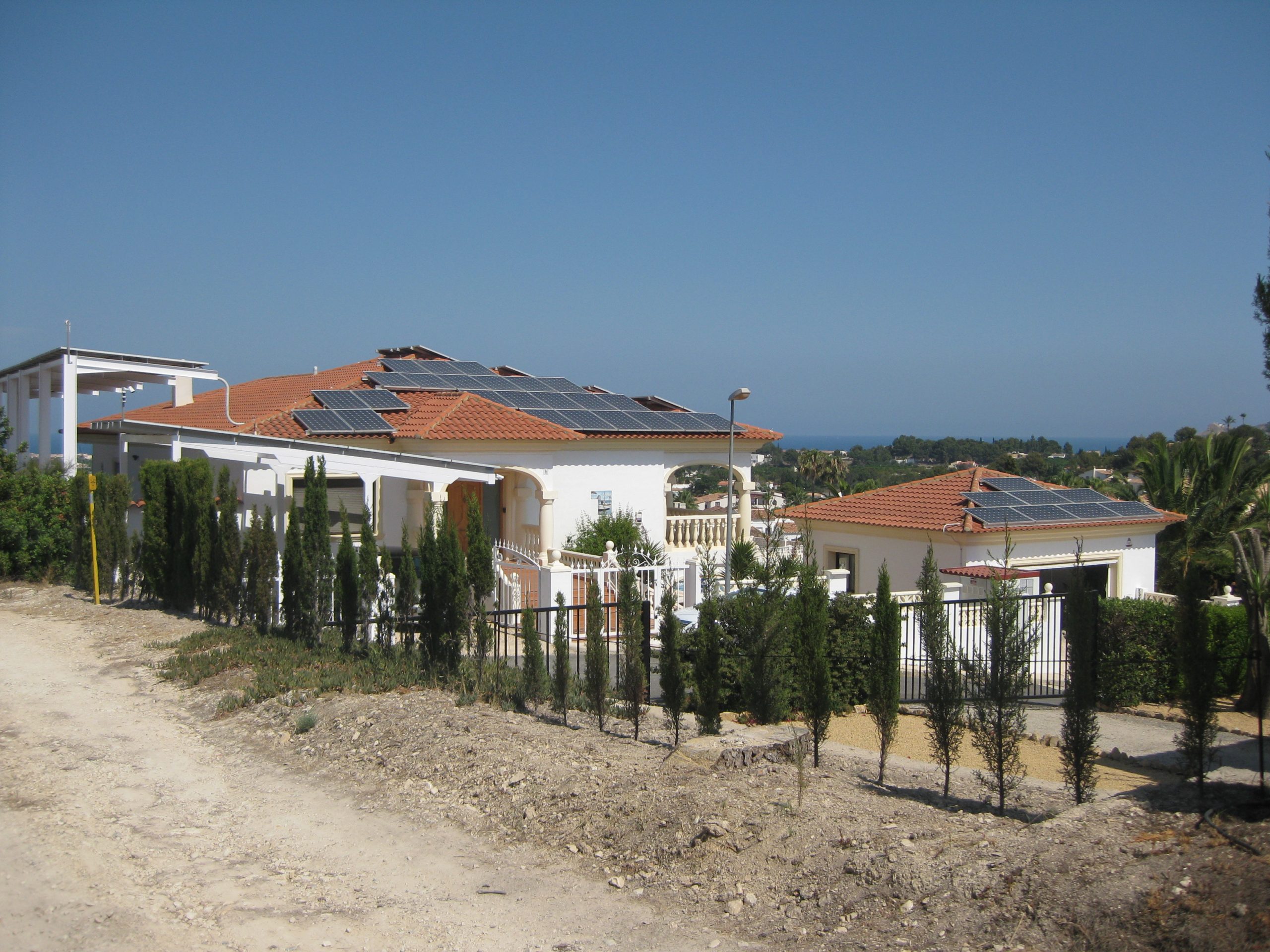Instalación fotovoltaica sobre la cubierta de un chalet unifamiliar que posee una potencia de 80 kWn, ubicada en una zona residencial de Alfaz del Pi (Alicante)